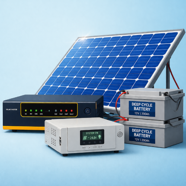Complete solar system installation including panels, inverters, batteries, and mounting systems tailored to your power needs.